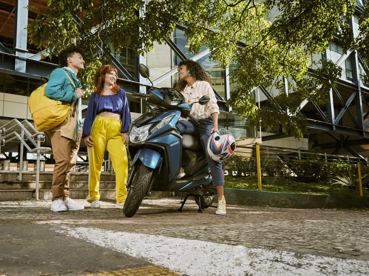 Nova Elite 125 eficiente e economica, com ganchos de utilidade trazendo comodidade para o dia a dia. Novo reposicionamento do tanque de combustível e mais espaço entre o assento e o escudo frontal.