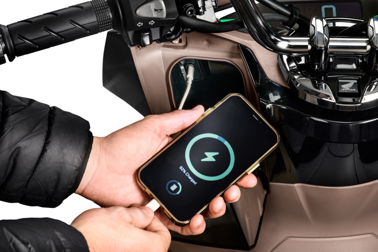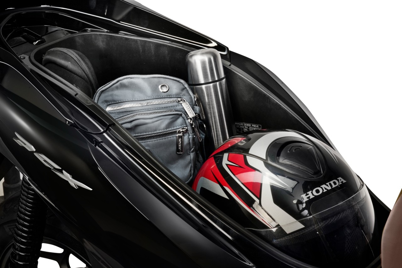 A PCX 2025 é conectada ao seu estilo de vida. Por isso, no porta-luvas da scooter há uma nova entrada USB-C para o carregador do seu celular. Foi a primeira moto do Brasil a vir com Idling Stop, um sistema inteligente, econômico e menos poluente que desliga o motor quando a moto está parada por mais de 3 segundos, religando automaticamente ao ser acelerada. Exclusiva assinatura de iluminação full LED que deixa o modelo ainda mais sofisticado, além de garantir melhor visibilidade.