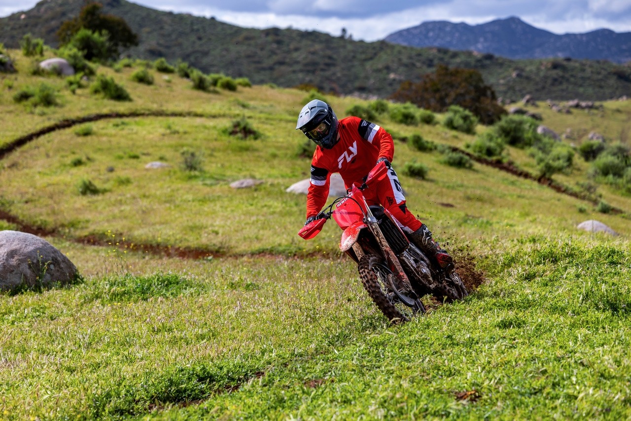 Para mais autonomia nas suas competições de longa duração, a versão da CRF 450 RX vem com um tanque de combustível de 8 litros de plástico injetável. Possui aro de 18 polegadas, permitindo o uso de pneus de perfil mais alto, ajudando a absorver melhor os impactos de terrenos irregulares, proporcionando maior tração e conforto para suas competições.